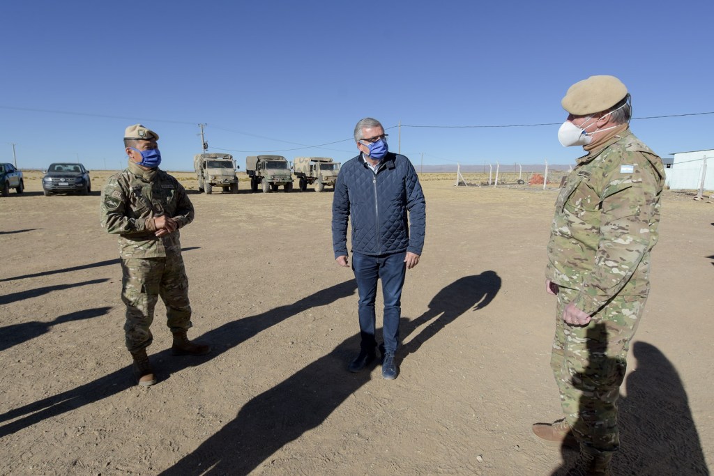 Junto al mandatario provincial estuvo el coronel mayor Mariano Castelli, el jefe del Regimiento de Infantería de Montaña 20, Hernán Aoki; la ministra de Desarrollo Humano, Natalia Sarapura; y la directora de Epidemiología, Fabiana Vaca; entre otras autoridades.