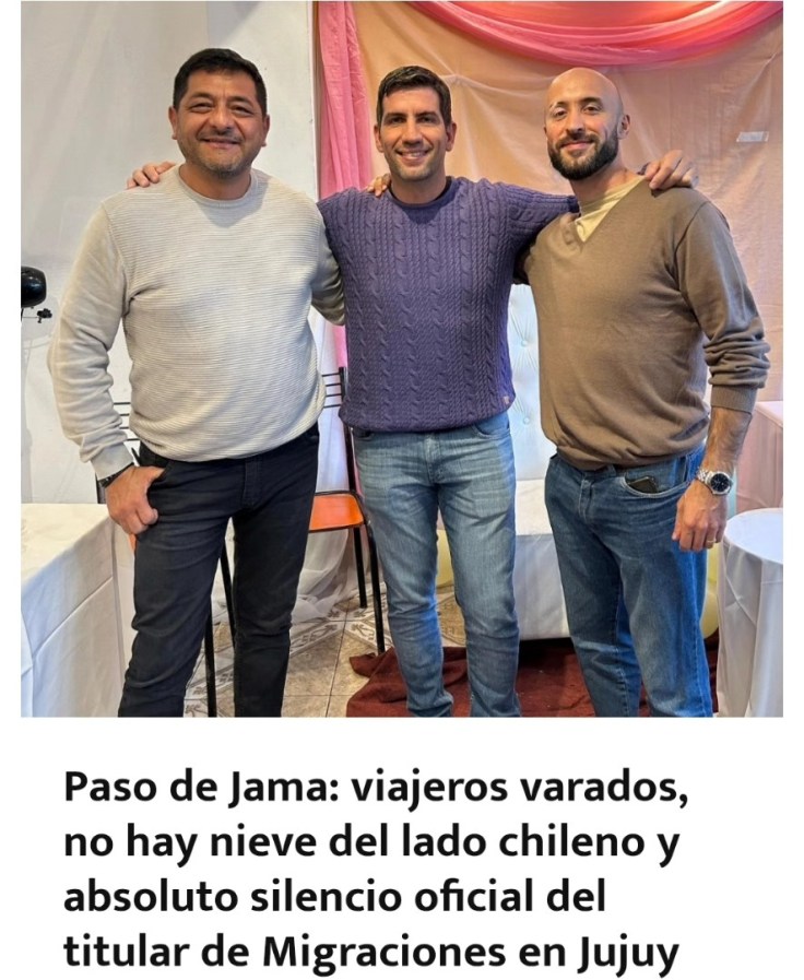 A la par, el Paso de Jama permanece cerrado con el argumento de la nieve, aunque viajeros que llegan desde Chile aseguran que del lado chileno no hay condiciones que lo justifiquen. La falta de información oficial alimenta la incertidumbre. En ese contexto, el silencio del titular local de Migraciones es ensordecedor. Según denuncias públicas de periodistas jujeños, el pediatra Roque Pereyra no aparece, no se sabe si está en Jama, en la provincia o ausente del país, mientras cientos de personas esperan respuestas.