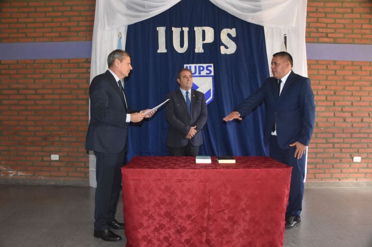 Con la presencia del vicegobernador a cargo del Ejecutivo, Alberto Bernis, se realizó el acto de asunción del nuevo director del Instituto Universitario Provincial de Seguridad (IUPS). El licenciado Javier Ahumada tomó juramento y quedó formalmente al frente de la institución responsable de la formación de los futuros cuadros policiales y penitenciarios de la provincia.