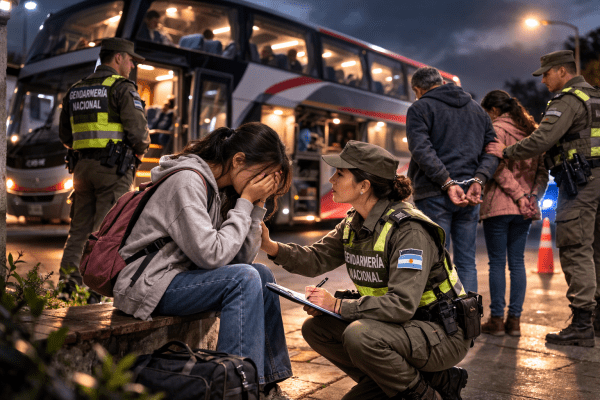 Una adolescente de 15 años fue rescatada de un colectivo de larga distancia cuando intentaban trasladarla hacia Jujuy para cruzar ilegalmente la frontera. La intervención se activó tras la alerta de un pasajero que advirtió conductas sospechosas de los adultos que la acompañaban. La información fue publicada por Infobae. El colectivo había partido desde la... Leer más →